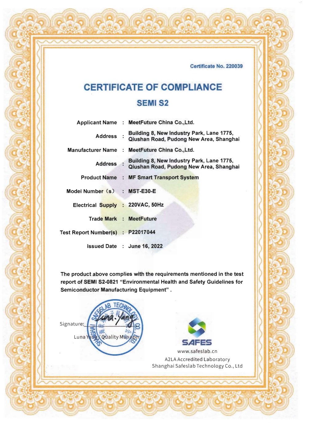 自 2018 年以来,九州酷游 ku游科技取得了国际标准化组织(ISO)质量管理体系(ISO 9001)、环境管理体系(ISO 14001)和职业健康安全管理体系(ISO 45001)认证。在AMHS产品技术体系领域,我们遵循半导体设备标准通讯协议,包括SEMI E37、 E82、E30、 E84、E10 等,使其易接入半导体晶圆厂MES系统来实现数据交互。